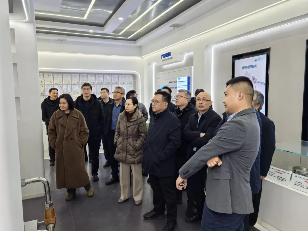 调研团一行莅临三峰透平,在总经理熊自强陪同下,先后参观了企业展厅、生产车间,详细了解企业发展历程、核心产品、技术实力及生产运营情况,对我公司在高端透平装备领域的深耕细作与创新成果给予高度评价。